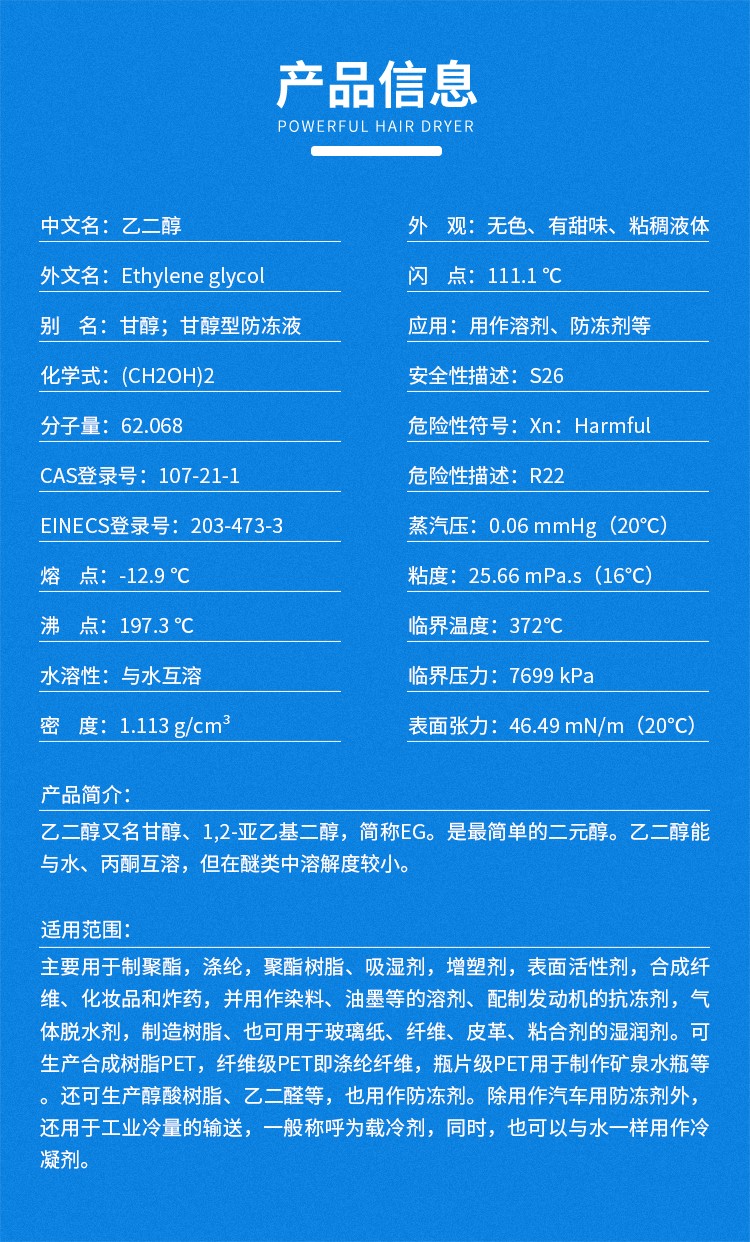 乙二醇 現(xiàn)貨供應(yīng)桶裝乙二醇防凍液 甘醇 含量高