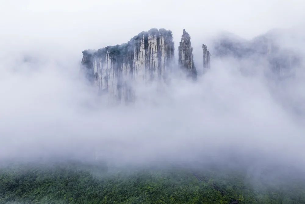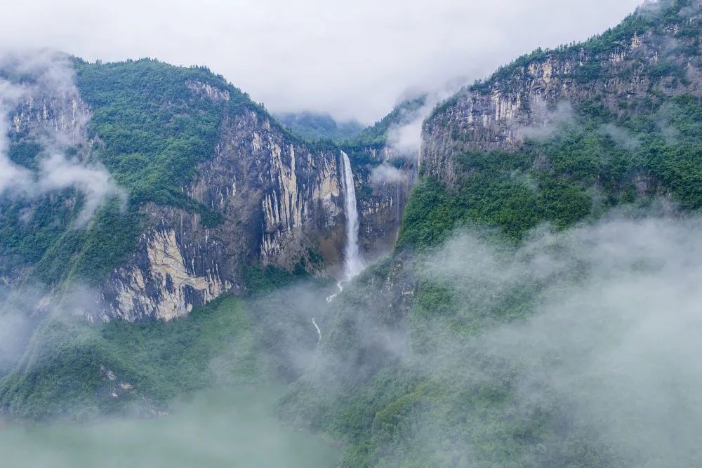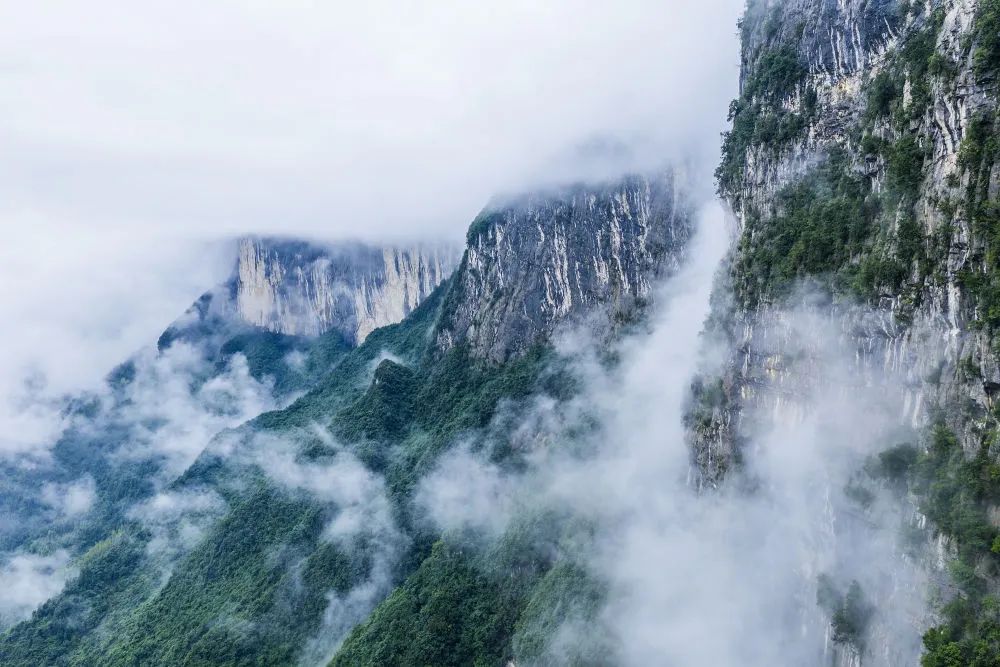 2025年8月11日拍攝的恩施大峽谷雨后景觀。(無人機照片)CICPHOTO/杜維 攝