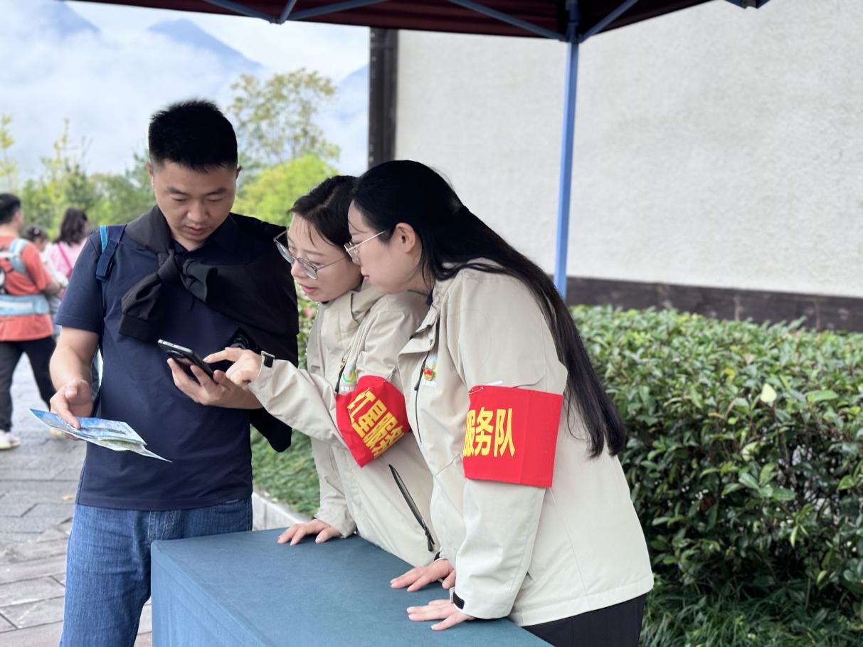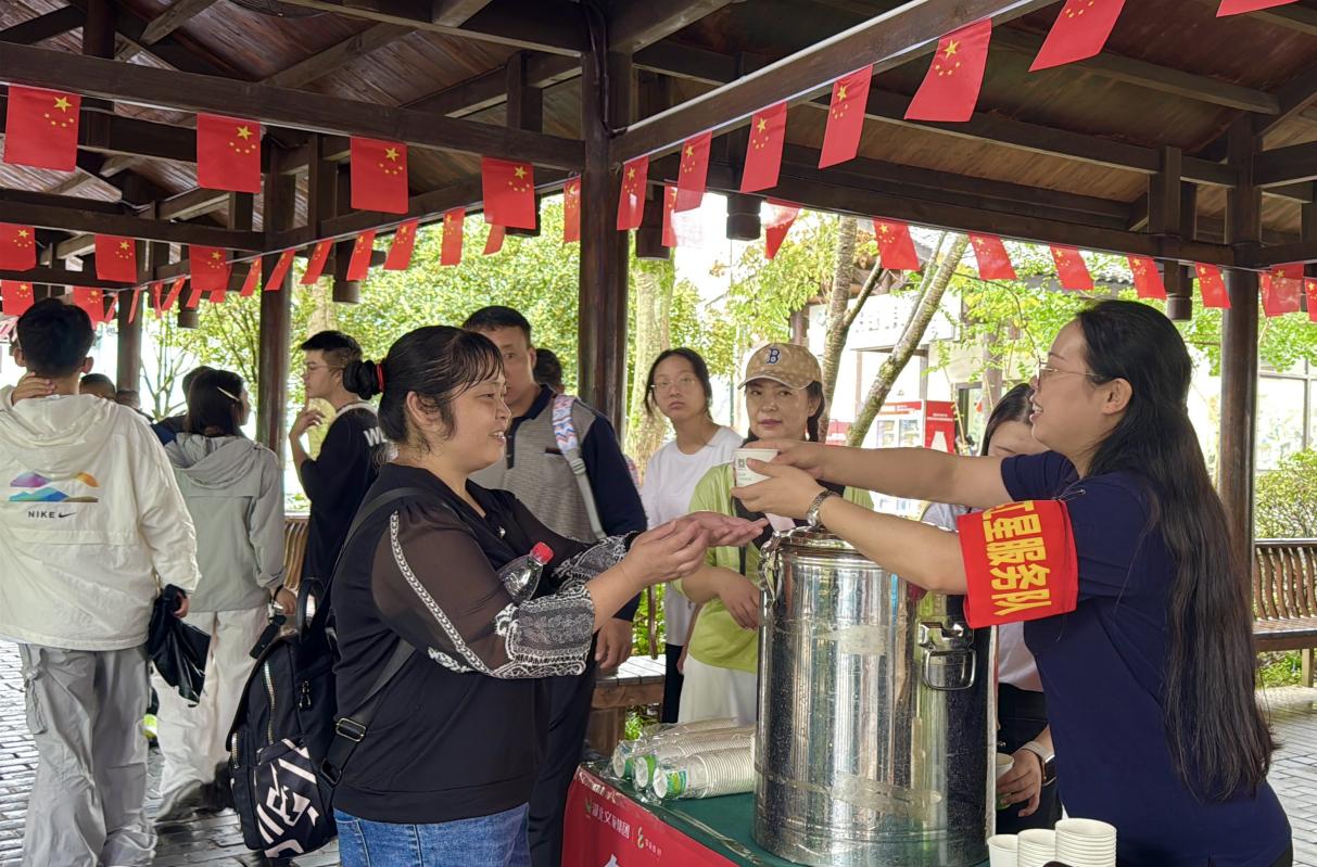 先鋒引領,傳遞紅色溫度。由黨員、團員及骨干力量組成的“紅星服務隊”“峽谷先鋒”是景區里亮眼的“暖心符號”,他們的身影活躍在各個服務環節,或是為游客指引游覽路線,或是在飯點為一線員工及時送上熱飯熱菜,或是在游客主要集散點遞上一杯熱茶,用一句“節日快樂”讓旅途暖意融融。
