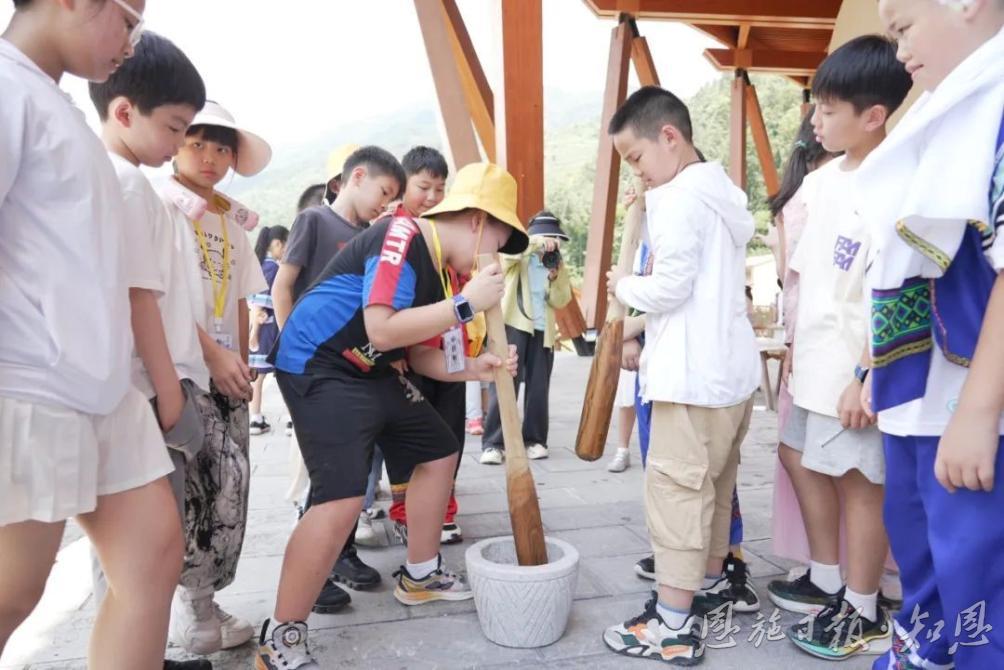 研學(xué)營餐廳內(nèi),打糍粑課堂現(xiàn)場熱火朝天。孩子們揮動木槌,在糯米的香甜氣息中體驗協(xié)作樂趣,苞谷粑粑從原料到成品的蛻變,正是傳統(tǒng)飲食文化的生動課堂。