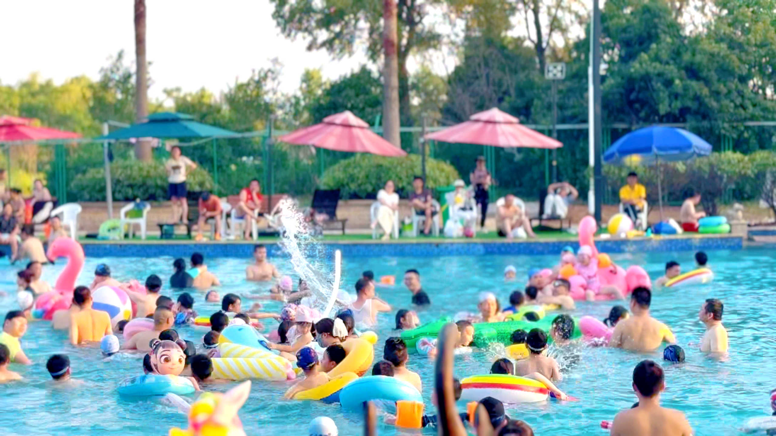 時隔2年,紅蓮湖酒店戶外泳池再次開啟,曾經火爆的熱門打卡地,再次為周邊居民帶來清涼體驗。泳池分為兩大板塊,最深水位分別為1.4米和0.6米,特別適合兒童戲水。每到黃昏,家長們帶著孩子紛至沓來,泡在水中盡情嬉戲,享受歡樂的親子時光。舒適的躺椅,茂盛的椰樹,營造出濃郁的熱帶風情。據統計,戶外泳池開放以來人氣持續火爆,高峰日接待量超1000人,再次成為本地社交媒體上的盛夏熱點話題。