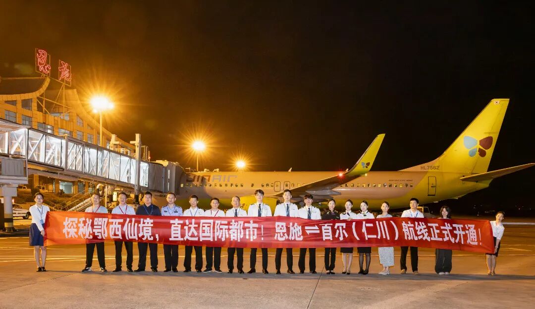 9月8日凌晨,韓國真航空LJ885航班平穩(wěn)降落在恩施許家坪國際機(jī)場(chǎng),標(biāo)志著恩施?首爾(仁川)國際航線正式通航。這條“空中橋梁”的搭建,不僅縮短了兩地時(shí)空距離,更恰逢恩施金秋旅游旺季,為中外游客開啟了便捷的山水探秘之旅。